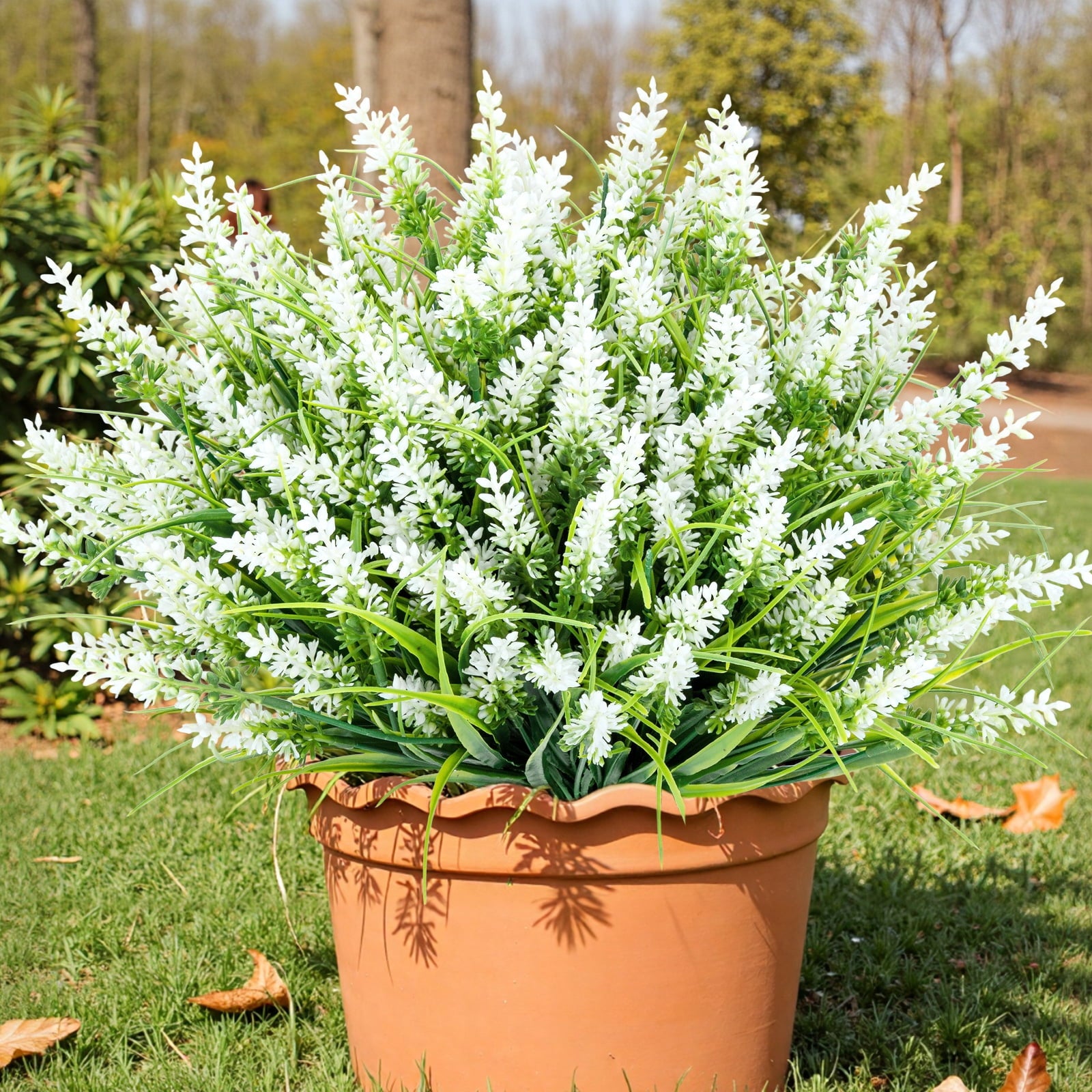 Scidweet 20 Bundles Fake Plants, Lavender Artificial Flowers Faux Plant Outdoors for Home Garden Porch Window Box Decor, White
