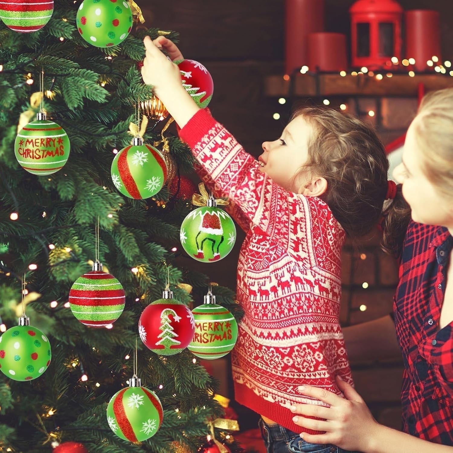 Scidweet 18pcs Christmas Balls Ornament 2.4 Inch Glittering Hanging Xmas Balls for Tree Decoration Balls Red Green Christmas Home Indoor Holiday Party Decor, Multicolor