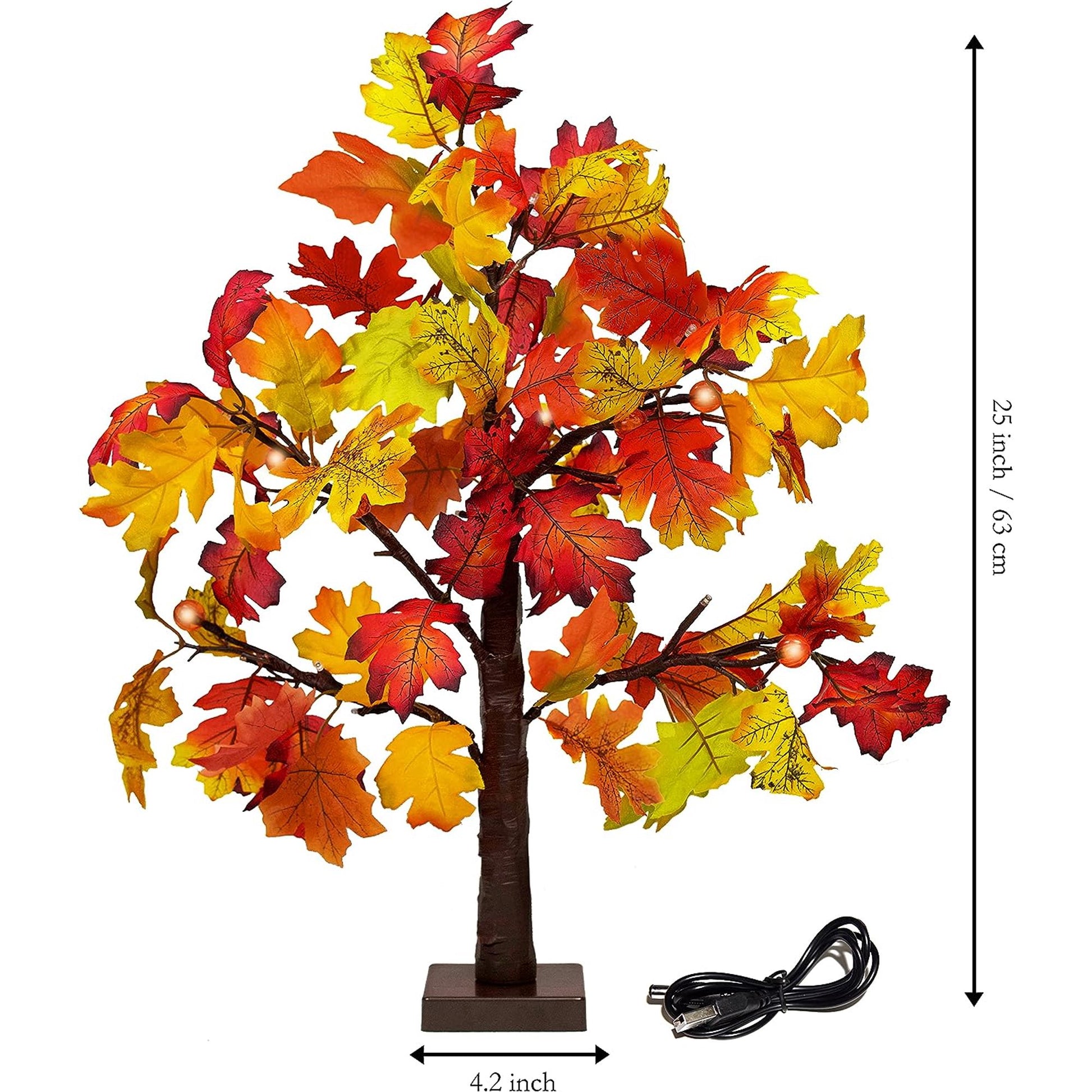 Scidweet Fall Decorations for Home, 25" 24 LED Artificial Fall Maple Leaves Table Tree with Pumpkins Lights Indoor Wedding Party Autumn Decor